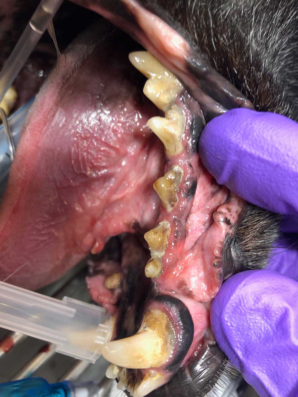For animals, dental cleanings need to be done under general anesthesia. Once asleep, we perform a full exam by probing the gum line to look for pockets, and full mouth x-rays to determine the extent of periodontal disease- which often includes bone loss. The teeth are cleaned with an ultrasonic scaler, and polishing is done to smooth the teeth after scaling.